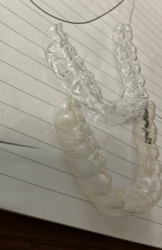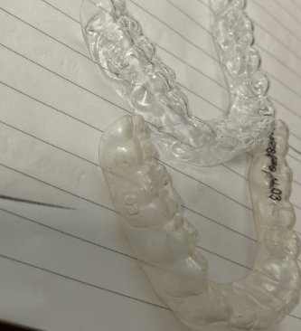 Unfortunately, the aligners were faulty. I tried them on and immediately noticed something wasn't right. The end-cap of the aligner didn't sit flush with one side of my rear molars. Comparing them with my old aligner (bottom photo), you can see a visible "hook" where the aligner does not sit flush with the tooth.